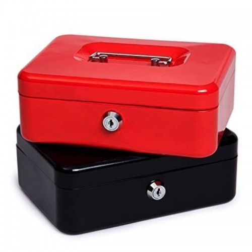 La caja metálica con llave esta Disponible en las medidas de 6, 8, 10 y 12 pulgadas y en variedad de 3 colores que son rojo, negro y azul.