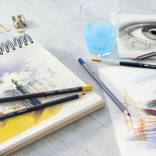 Los colores Faber Castell Goldfaber son de mina altamente soluble en agua, para crear efectos de sombreados y mezclas típicos de cuadros de acuarela.