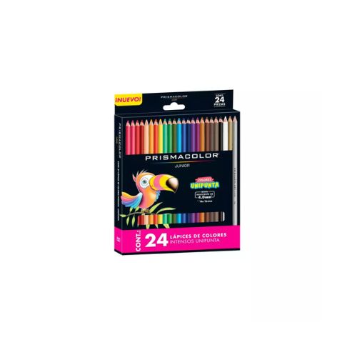 - Prisma color junior X 24: Todos los lápices de colores de esta caja son unipunta. 24 colores, entre ellos 2 metalizados (dorado y plata).