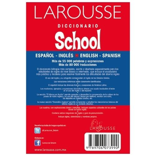 Tenemos dos tipos de diccionario ingles español Larousse uno es el básico y el otro es el diccionario school, el diccionario school trae más contenido que el básico.