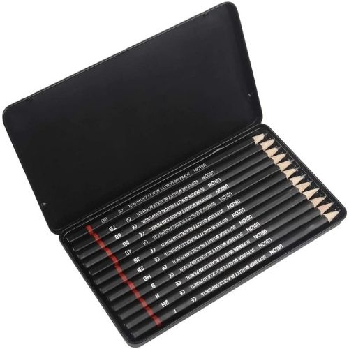 Punta de pincel real: este juego ofrece la gama de durezas de lápices de grafito para el artista, incluye 12 lápices de grafito (8B, 7B, 6B, 5B, 4B, 3B, 2B, B, HB, F, H, 2H), los lápices de dibujo permiten crear líneas de cualquier grosor y saturación de color.