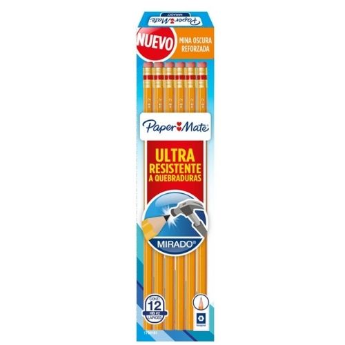 ¡Saca más provecho de tu lápiz con los lápices Mirado 2 Paper Mate ultra resistente a quebraduras .Estos lápices con barra de madera cuentan con mina reforzada resistente a la rotura al escribir, por lo que necesitan menos afilado y duran más. Los Lápices Mirado 2 en barra Triangular, Hexagonal y Redondo de madera también cuentan con borradores 100% libres de látex.