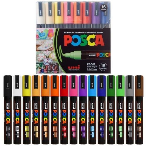 El Marcador Posca se adhiere a diversos materiales en superficies donde se les dificulta a marcadores comunes; pueden adherirse en madera, textiles, pieles, vidrio, cerámica, papel, cartón, plástico, en metales y también en minerales.