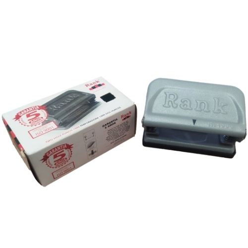 Perforadora de dos huecos, para uso hogar y oficina, con capacidad para 8 hojas 75 gr, material metal que da gran rendimiento y duración. Productos Rank garantiza que este articulo ha sido fabricado bajo el más estricto control de calidad.