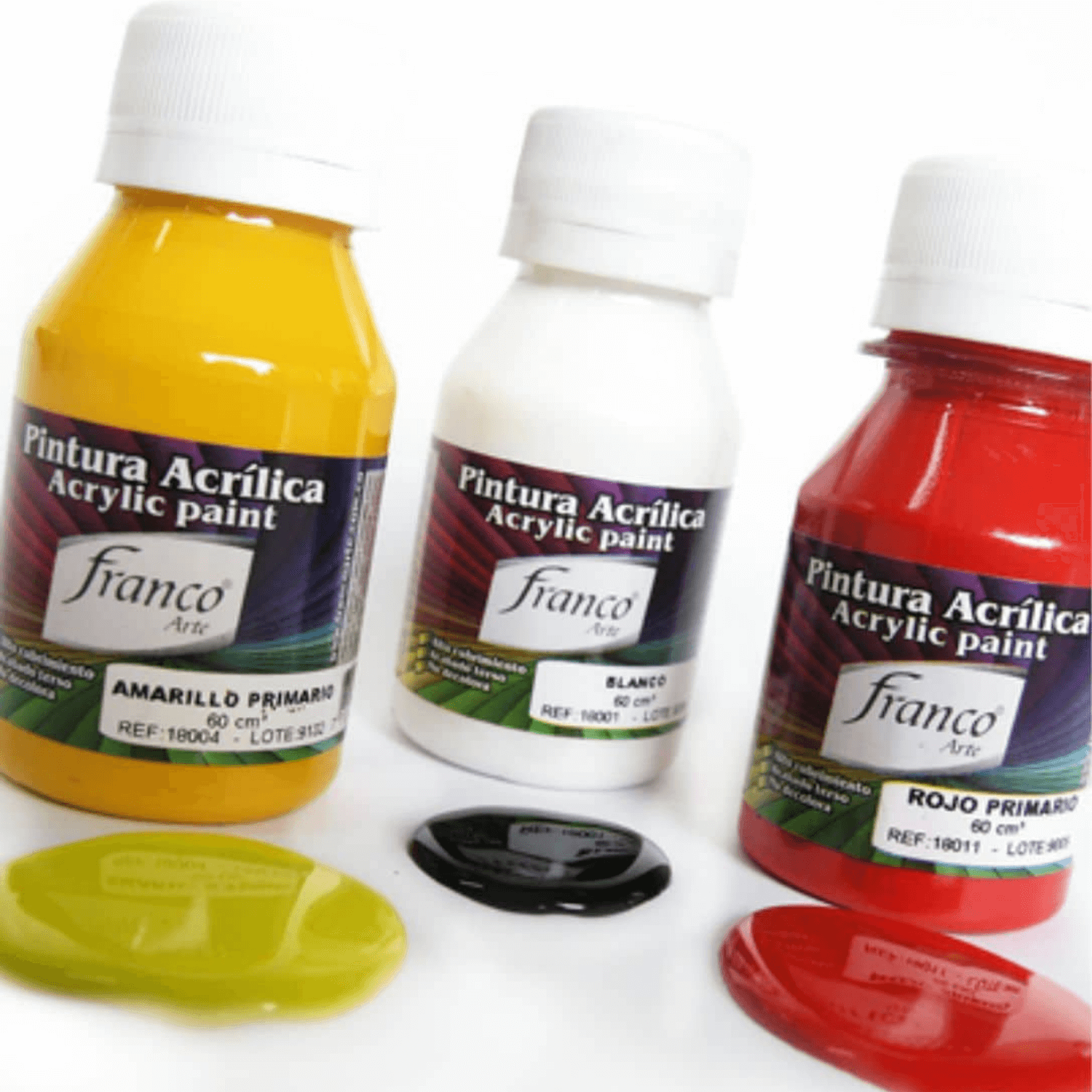 Nos complace representar La Pintura Acrílica Franco Arte 60ml es una pintura a base de agua cuyos formadores de película son emulsiones acrílicas.