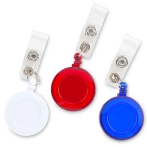 Estos yoyos porta escarapela están disponibles en varios colores los cuales son: Transparente, verde, azul, amarillo, naranja, negro y blanco.