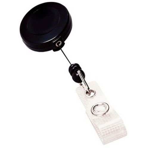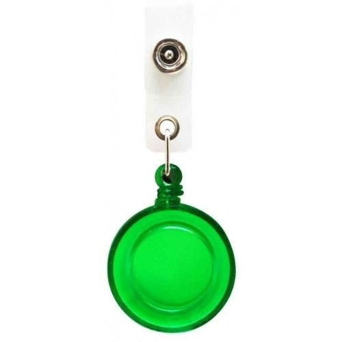 Elaborado en plástico y con cuerda interior retráctil, posee un clip en la parte posterior para ajustarse en la ropa o el pantalón.